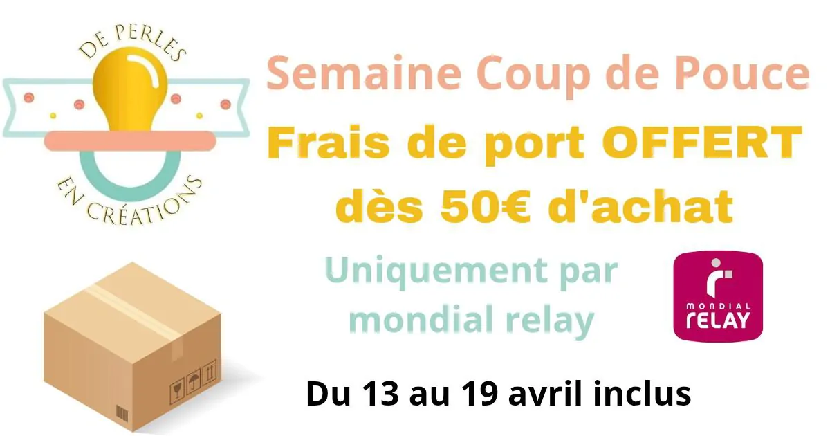 📦 Les frais de port sont OFFERT par mondial relay dès 50€ d'achat - du 13 au 19 avril inclus - réservé aux envois vers la FRANCE uniquement. Coup de pouce de la semaine !