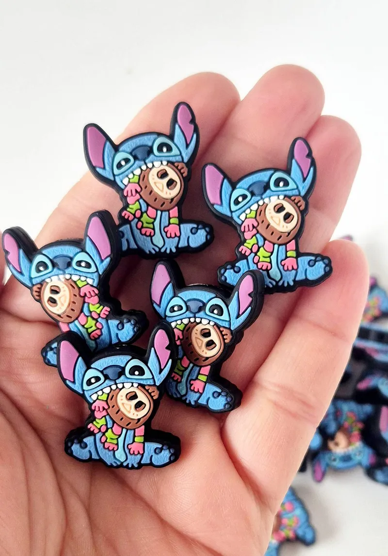 perle figurine 3D en silicone STITCH gris avec t-shirt Trou vertical env. 3mm dimensions : 30x30x15mm env. vendu à l'unité