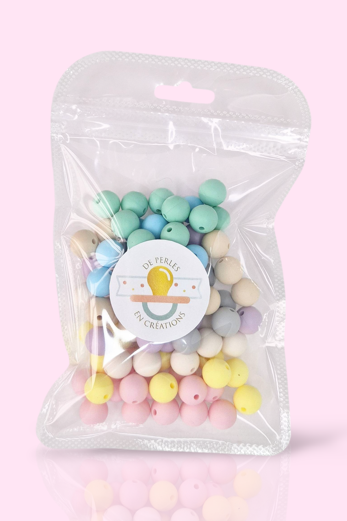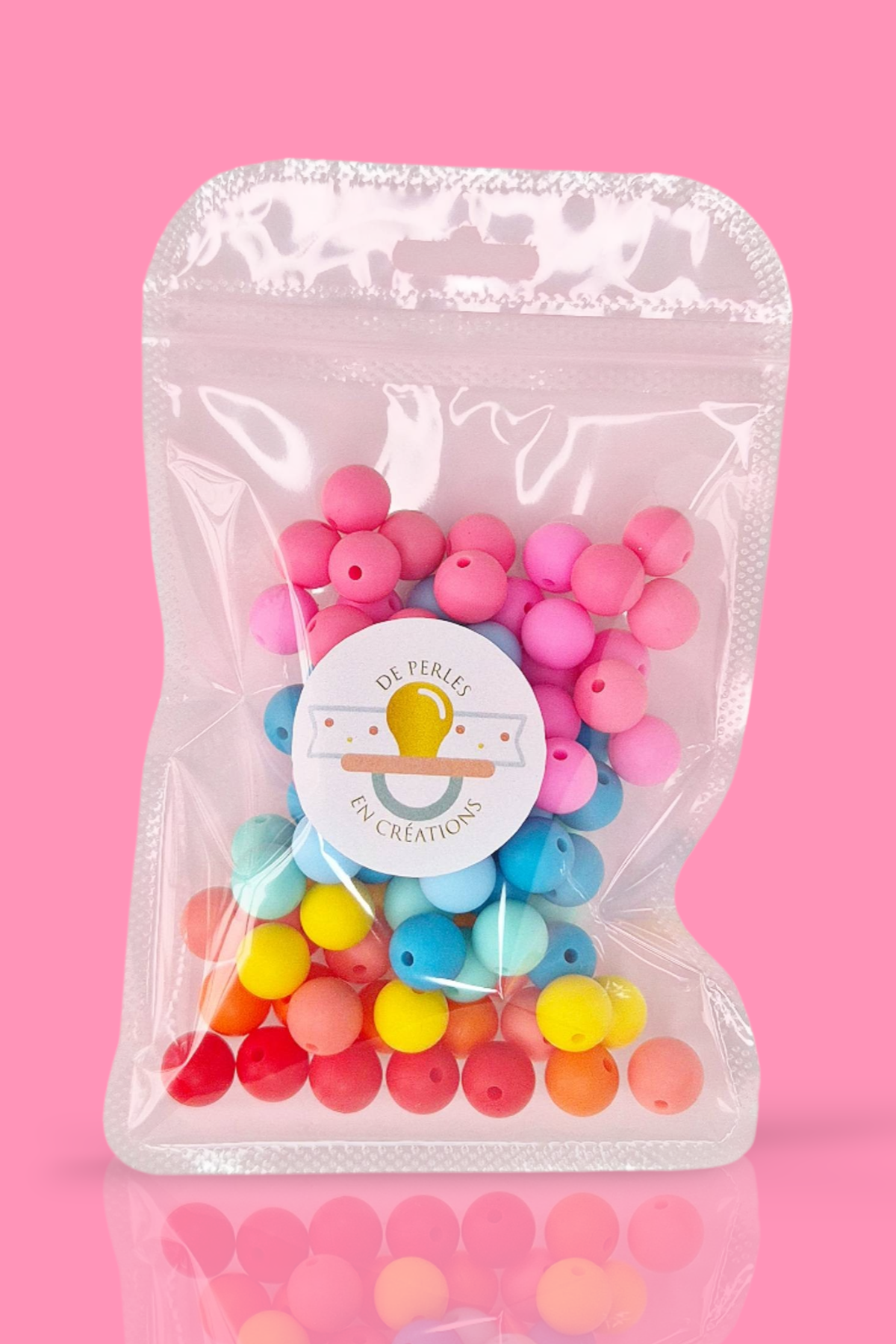 Chaque sachet de perles en silicone contient 50 perles Rondes de 12mm réparties en 4 coloris détail des couleurs en photo et en description modèle : PACK NUDE