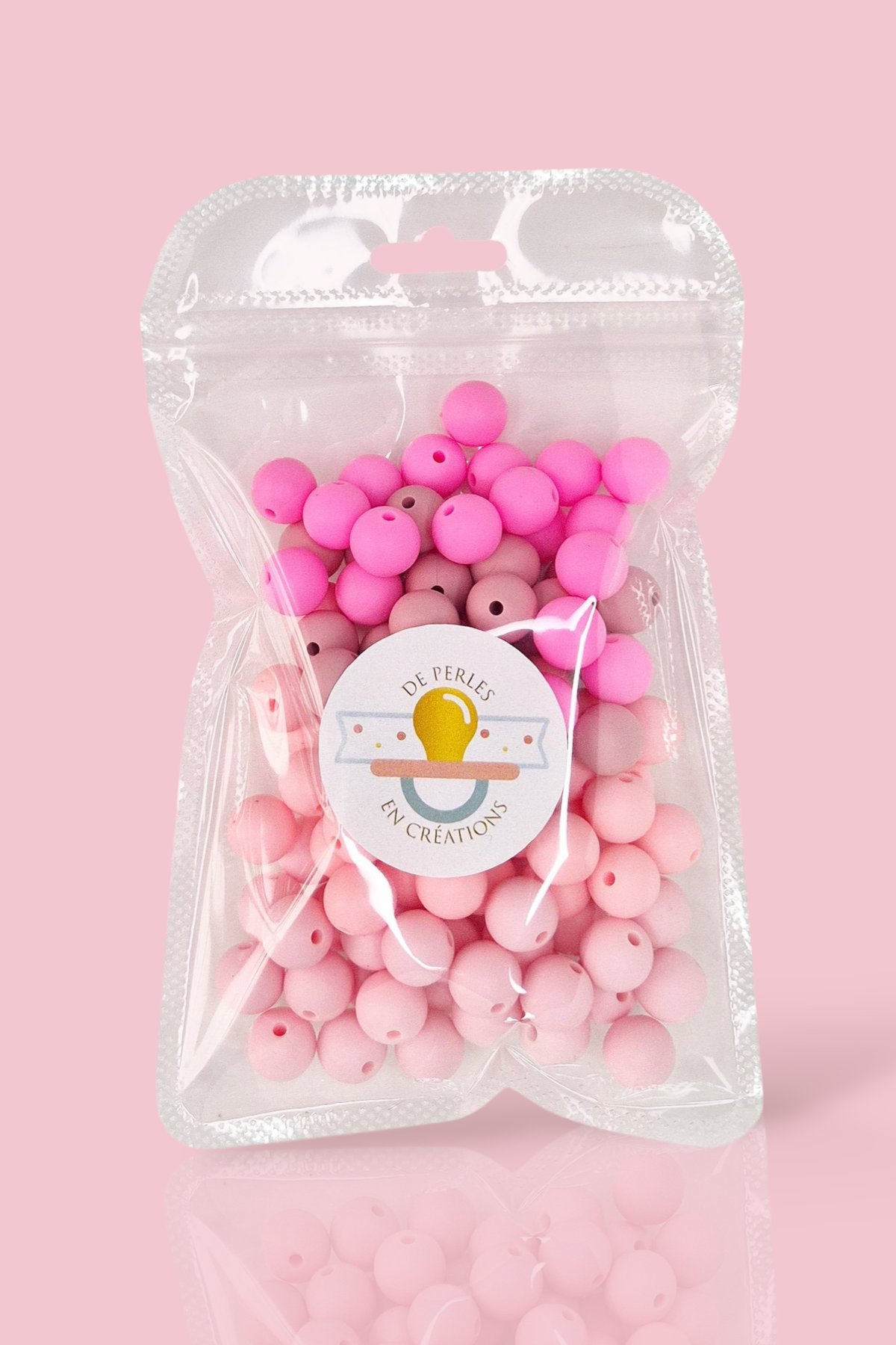 Chaque sachet de perles en silicone contient 50 perles Rondes de 12mm réparties en 4 coloris détail des couleurs en photo et en description modèle : PACK MANDARINE