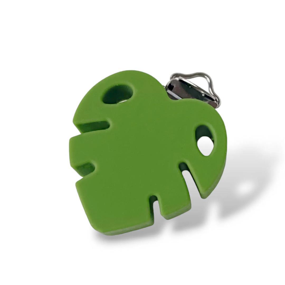 Clip en forme de FEUILLE en silicone Dimension : 40x40 Coloris : PARME 2 trous de ventilation