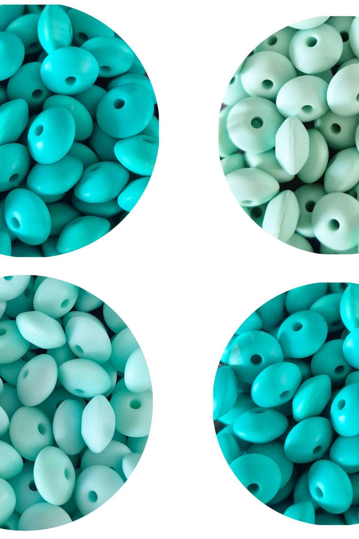 perle ronde 12mm en silicone coloris : nuance de TURQUOISE trou env. 2mm vendu à l'unité